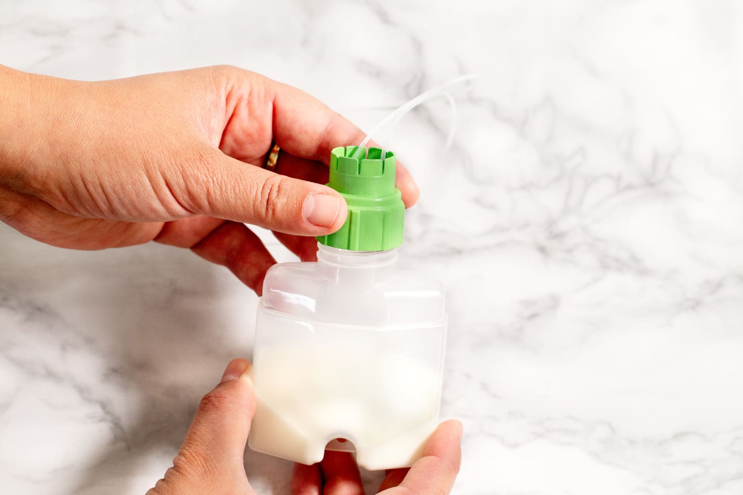 אם החלב התייבש בצינור, הניחי את הצינור בסיר עם מים רותחים למשך 5-10 דקות. לאחר מכן מלא את מיכל החלב במים חמים והרכב את הסט עם הצינורות. החזיקו את המכשיר מעל הכיור ולחצו בחוזקה על מיכל החלב. פעולה זו אמורה לגרום למים ולשאריות החלב שבצינור לזרום החוצה. לאחר מכן נקו את כל המכשיר כרגיל.