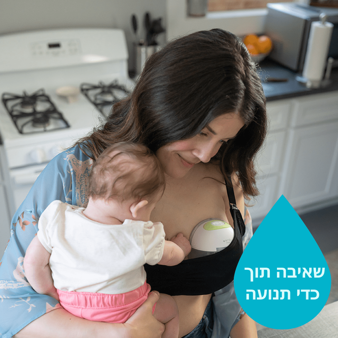 ✔ חופש תנועה מלא – בזכות העיצוב הלביש, אין צורך להחזיק את המשאבה בידיים או לשבת במקום אחד. אתן יכולות לשאוב תוך כדי עבודה, סידורים או מנוחה בבית.